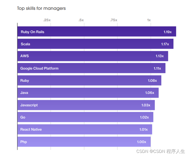 数据显示,精通Ruby on Rails这一技能的经理最受欢迎,面试请求增加了1.19倍。