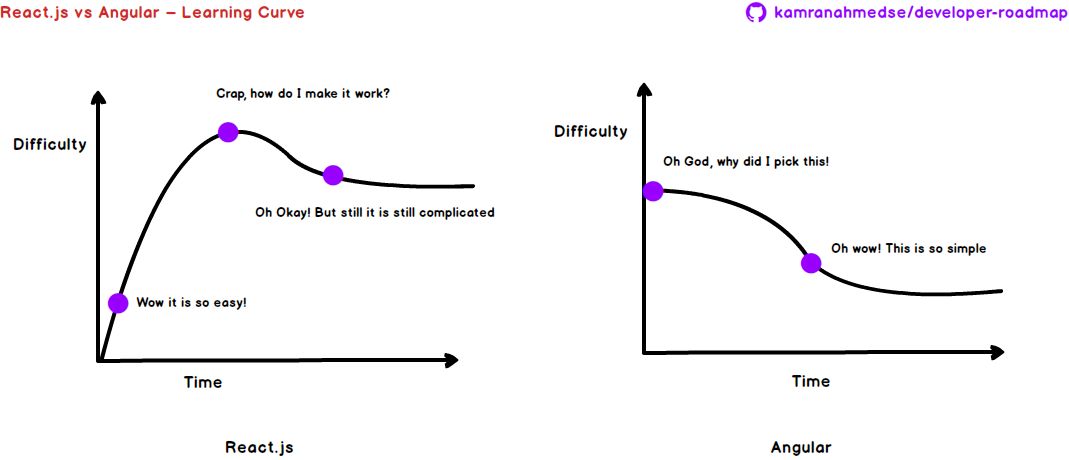 我将把比较和我的个人经历留给另外一篇文章,但由于这篇文章是关于学习,这里是你如何找到Angular和React的学习曲线