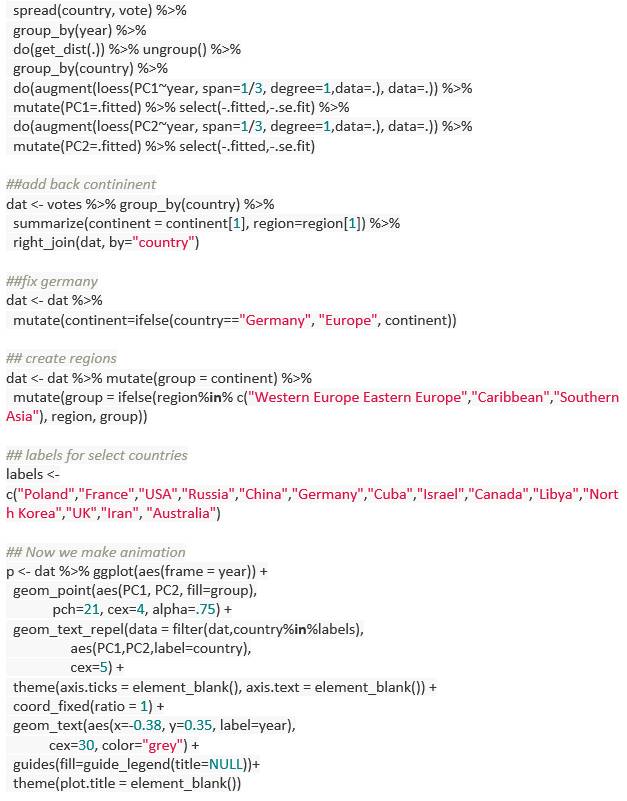 以下是代码。整理数据的代码是由David Robinson(https://twitter.com/drob)提供的。你会看到我们将随时间变化的距离进行了平滑处理,从而避免一些点跳动范围过大。