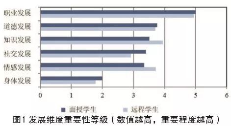 研究揭示了面授学生和远程学生对支持服务和设施的需求。尽管他们的学习环境存在差异,但两组学生对不同发展维度重要性的排序是相似的。这样的结果说明全面发展对两个群体都十分重要,然而相关支持服务的提供却主要是针对面授学生。在Hettler的学生发展健康模型中提及的非学术性支持,还没有广泛提供给远程学生(Scheer&Lockee,2003;Thompson&Porto,2014)。