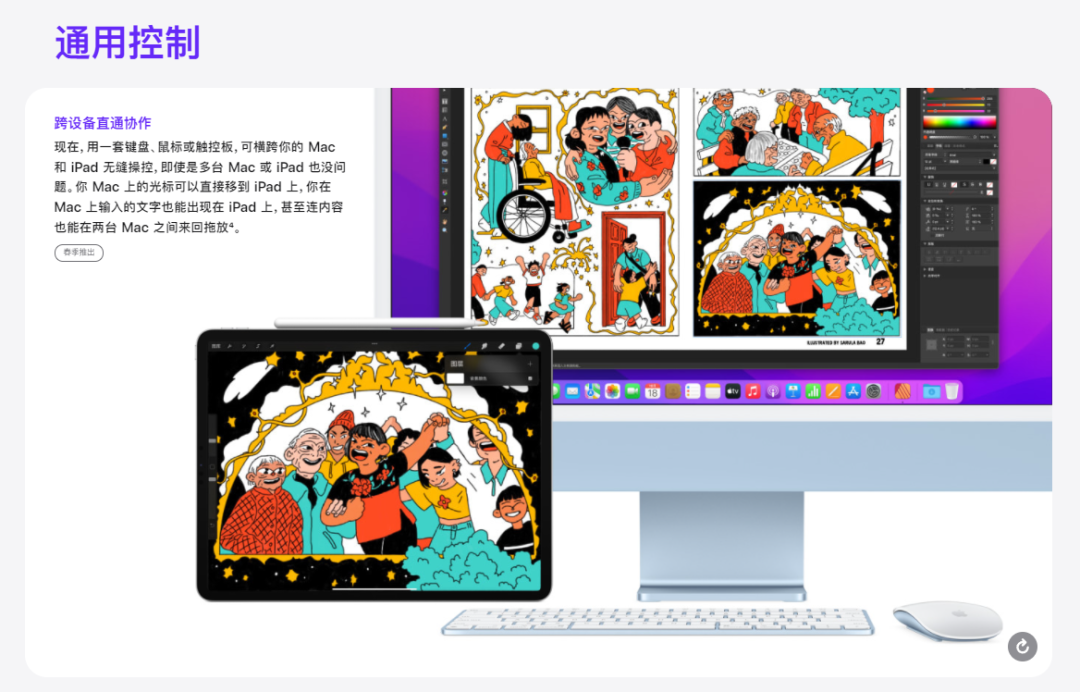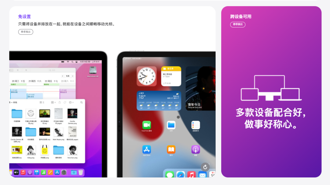 据了解,通用控制是指用一套键盘、鼠标或触控板,可横跨你的 Mac 和 iPad 无缝操控,即使是多台 Mac 或 iPad 也没问题。你 Mac 上的光标可以直接移到 iPad 上,你在 Mac 上输入的文字也能出现在 iPad 上,甚至连内容也能在两台 Mac 之间来回拖放。苹果尚未就通用控制的开发发表任何公开声明,春季版本接近 WWDC22,苹果将在届时宣布其操作系统的下一个版本,因此苹果可能会在那时候添加上通用控制功能。