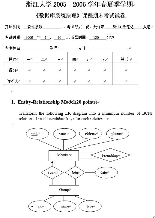 《数据库系统原理》课程期末考试试卷