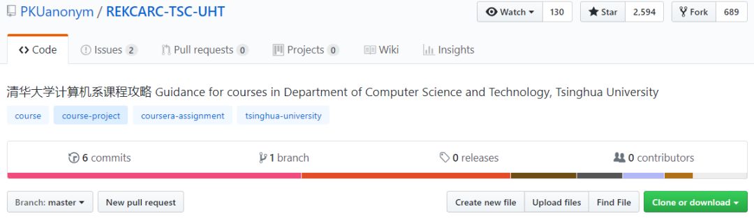 该项目受受浙江大学相关项目启发,值得注意的是该项目只针对清华大学计算机系攻略。目前已经获得 2594 个Star,689 个 Fork。(GitHub地址:https://github.com/PKUanonym/REKCARC-TSC-UHT)