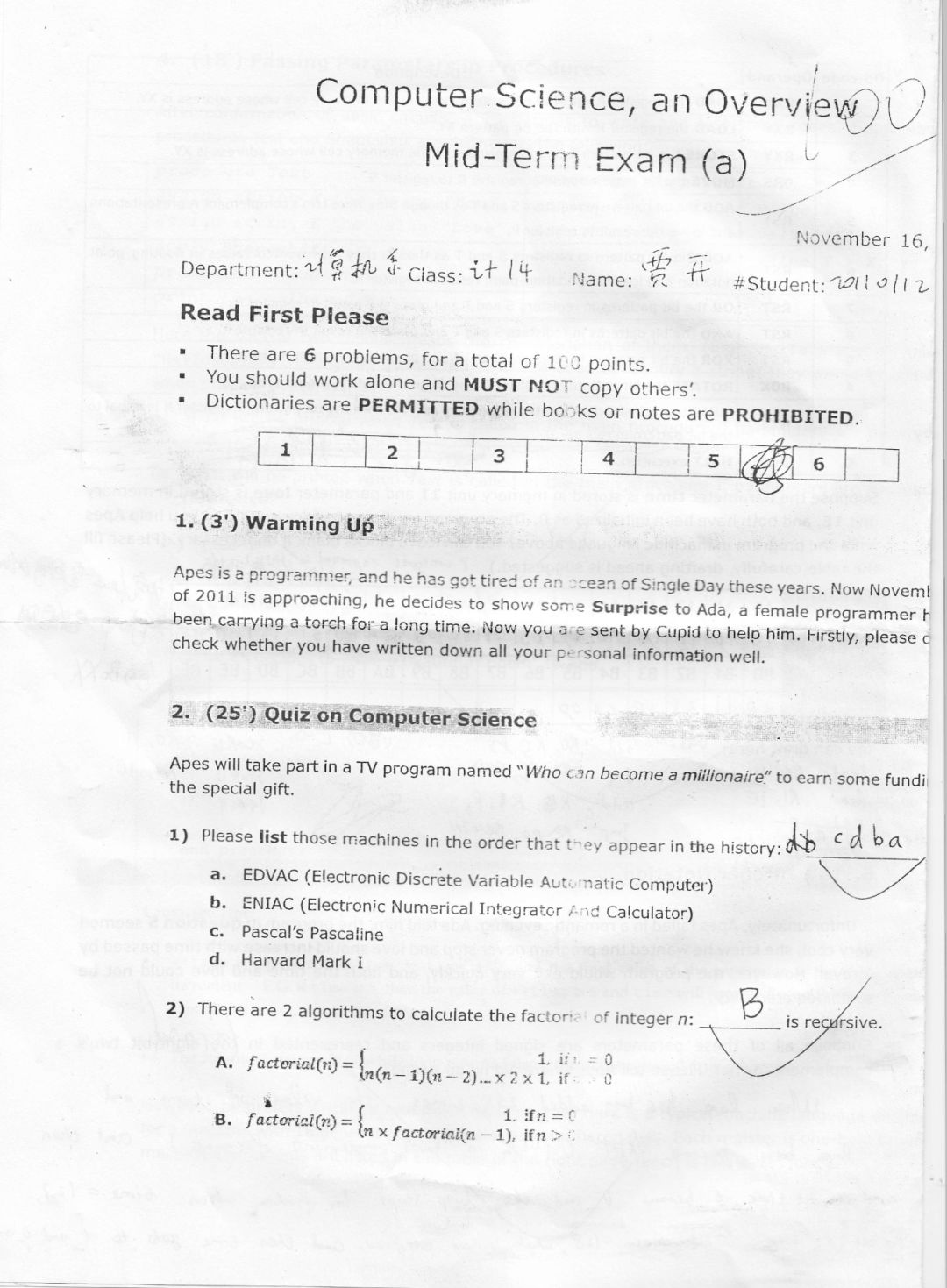 计算机科学导论期末试卷