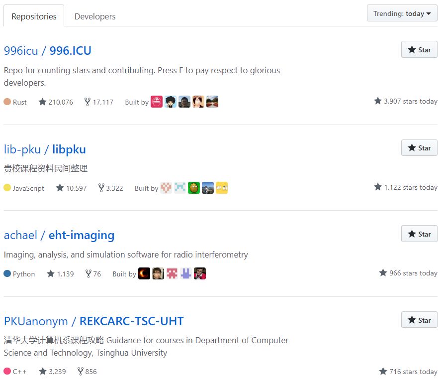 继上次猿妹在GitHub上找到了中科大和北大的计算机课程资源,近日,浙江大学和清华大学的课程资源也登上了GitHub Trending榜单