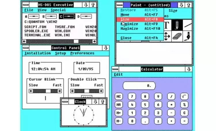 1985 年,Windows 1.0 发布。它采用了 16 位操作系统 MS-DOS 的图形界面,它用窗口替换了命令提示符,还自带了日历、记事本、计算器等简单的应用程序,使得电脑操作更为简单。但当时很多人认为 Windows 1.0 只是一个低劣的产品。