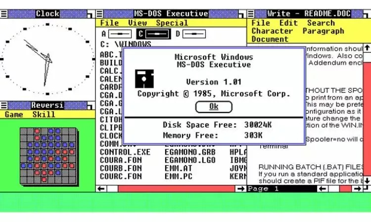 1985 年,微软为 DOS 模拟环境加入了用户图形界面,并由此推出了第一版的 Windows。