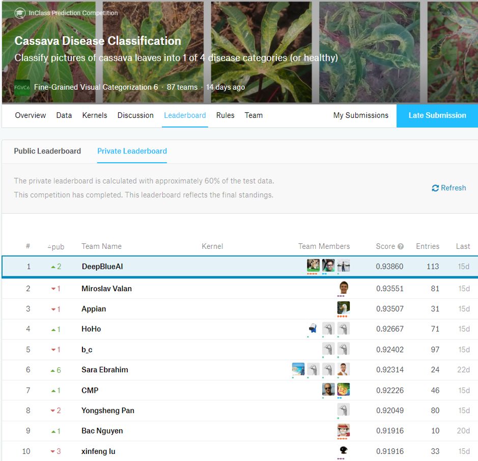 近日,在Kaggle上举办的CVPR 2019 Cassava Disease Classification挑战赛公布了最终结果,国内团队 DeepBlueAI 获得冠军。