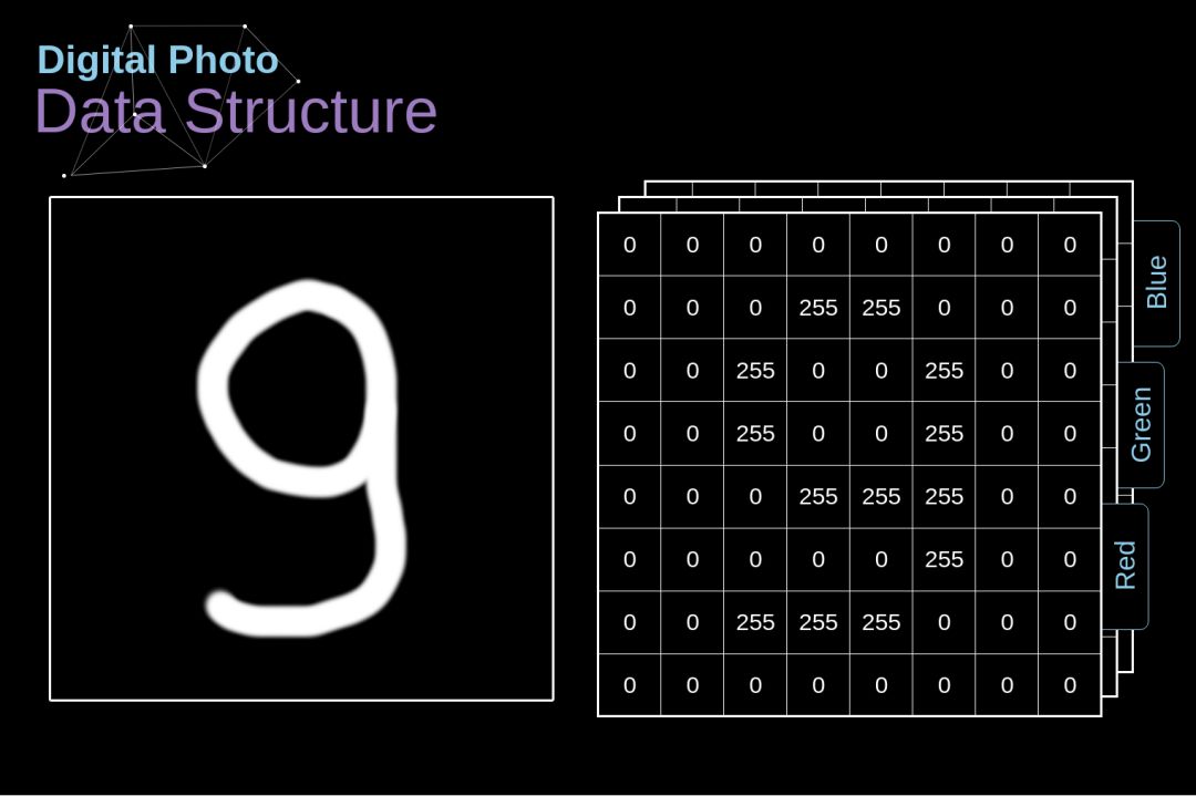 首先花一点时间来解释一下数字图像的存储方式。数字图像实际上是巨大的数字矩阵。矩阵中的每个数字对应于其像素的亮度。