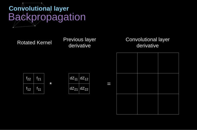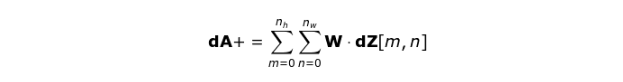 该操作可以用以下公式表示,其中 kernel 由 W 表示,dZ[m,n] 是一个标量,该标量属于从前一层所获得的偏导数。