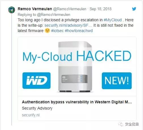 作为一款众所周知的 NAS 设备,西部数据的 My Cloud 系列屡次因安全问题而登上报端。漏洞利用者再次证实了这一事实,称其也向西数汇报了同样的漏洞,甚至纪录了整个过程。