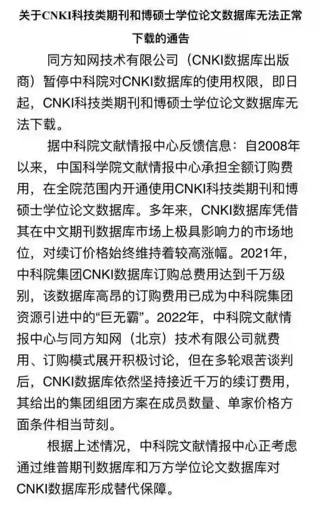 知网又火了!网传中科院停用知网,近千万续订费太贵了