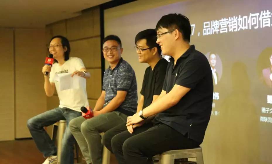 除了嘉宾们的个人分享,现场还设置了“2017,品牌营销如何借力新媒体”的圆桌论坛。新榜联合创始人兼COO李建伟、深圳量子云·卡娃微卡CEO纪卫宁、圈子文化CEO甄妙,青葱新媒体CEO桑兮兮同为自媒体行业的创业者,又各自代表着不同的创业群体。他们就品牌营销的话题,展开了精彩对谈。