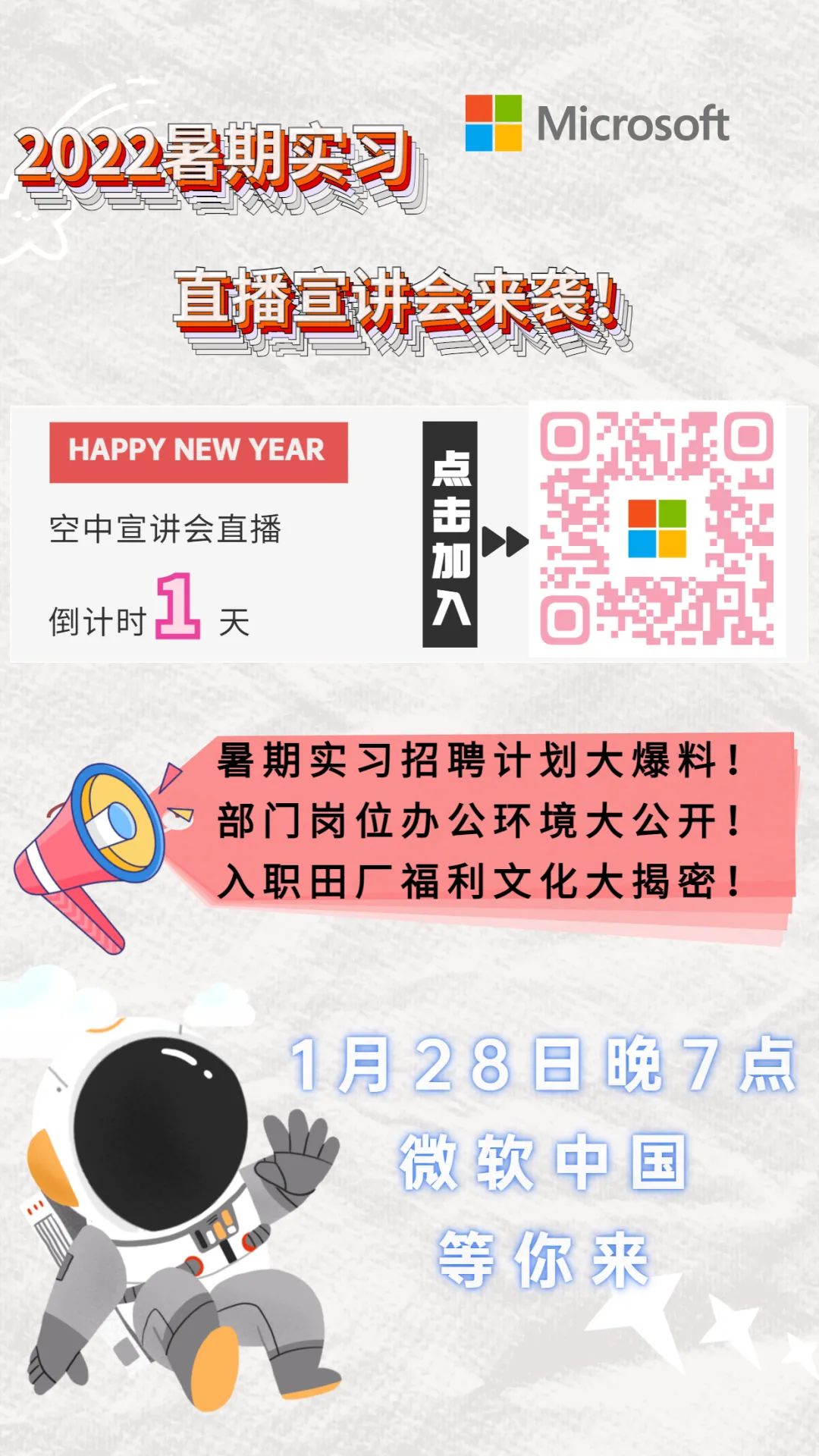 微软2021年暑期实习生招聘空中宣讲会丨直播倒计时1天