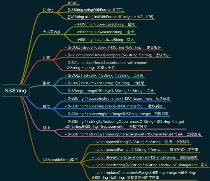 在 OC 中使用 NSString 来表示字符串,可变 NSMutableString 继承不可变 NSString 类,好比一个字符串链表,可对其进行 增删改 操作。