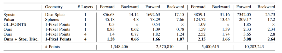 表I:RTX 2080 Ti上1920×1080图像的正向和反向渲染时间(以毫秒为单位)