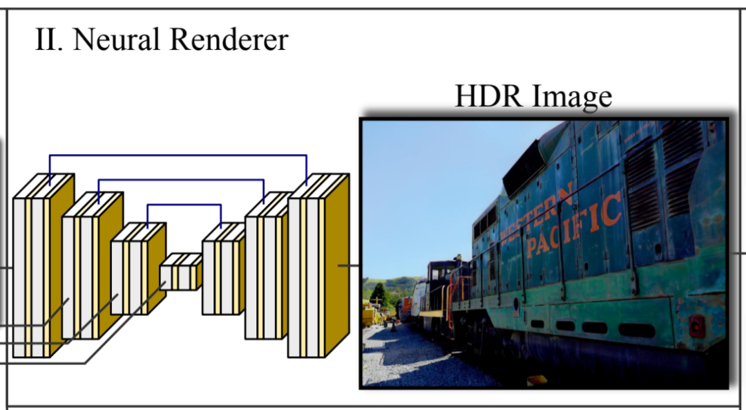 神经渲染器(图2中间)采用多分辨率神经图像生成单个HDR输出图像。