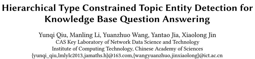 Citation:Qiu, Y., Li, M., Wang, Y., Jia, Y., & Jin, X.(2018). Hierarchical Type Constrained Topic Entity Detection for Knowledge Base Question Answering. Companion of the Web Conference (pp.35-36).