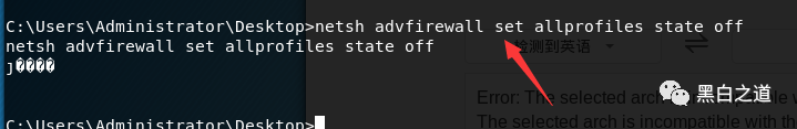 我们使用上边netsh advfirewall set allprofiles state off命令来关闭