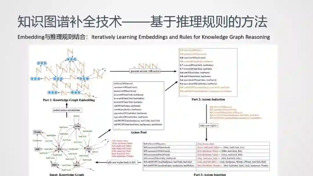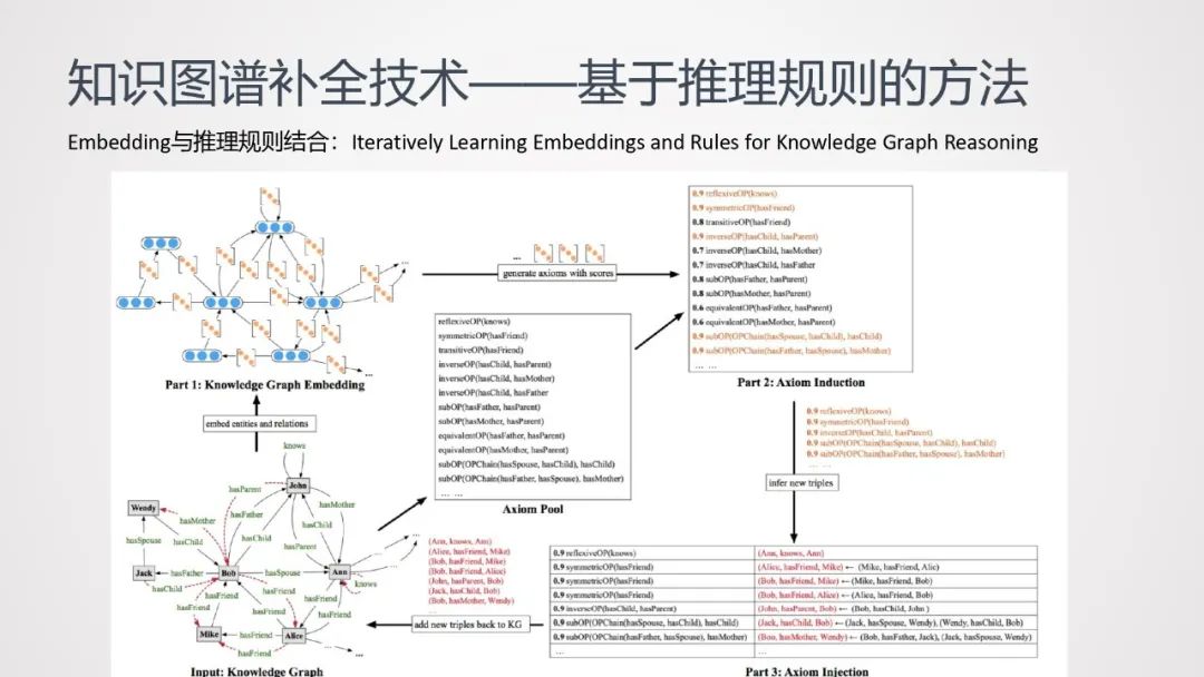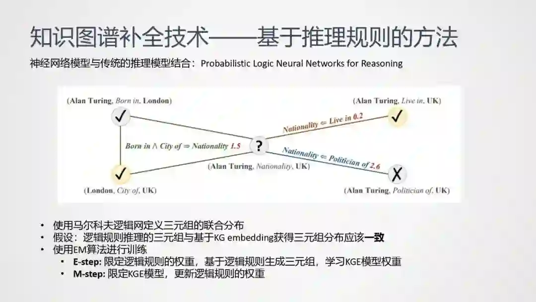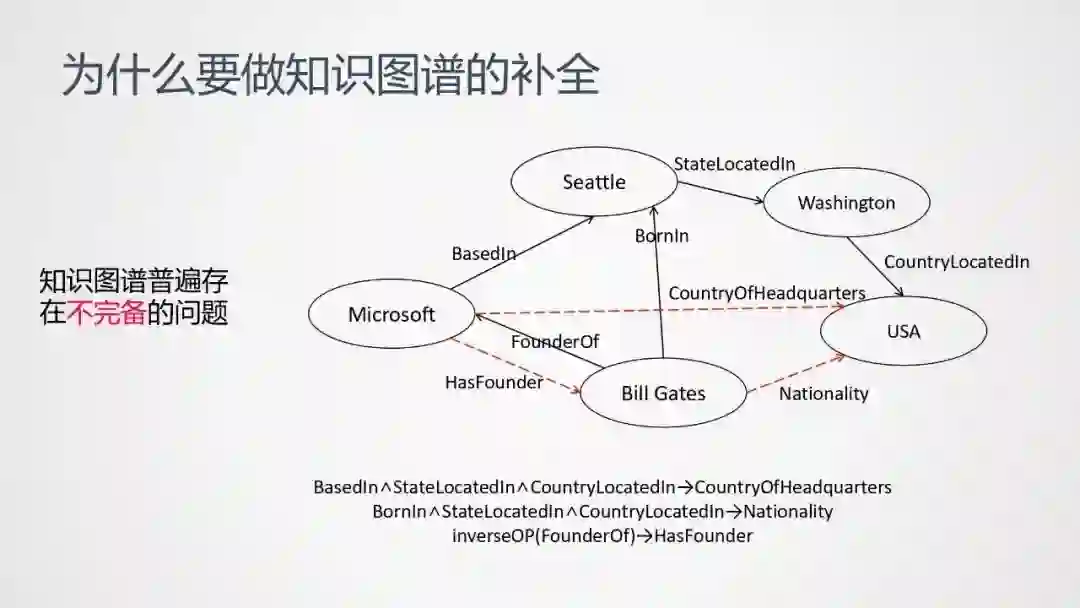知识推理是针对知识的一项重要应用,很自然的会考虑将其应用在知识补全中;与路径查找不同,知识推理更侧重于对逻辑规则本身建模。