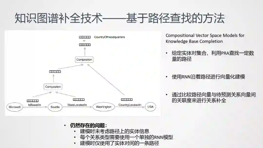 基于知识表示方法,一般不能处理下图这种多步知识推理。(图中从微软到美国,需要经过4步推理才能获得)