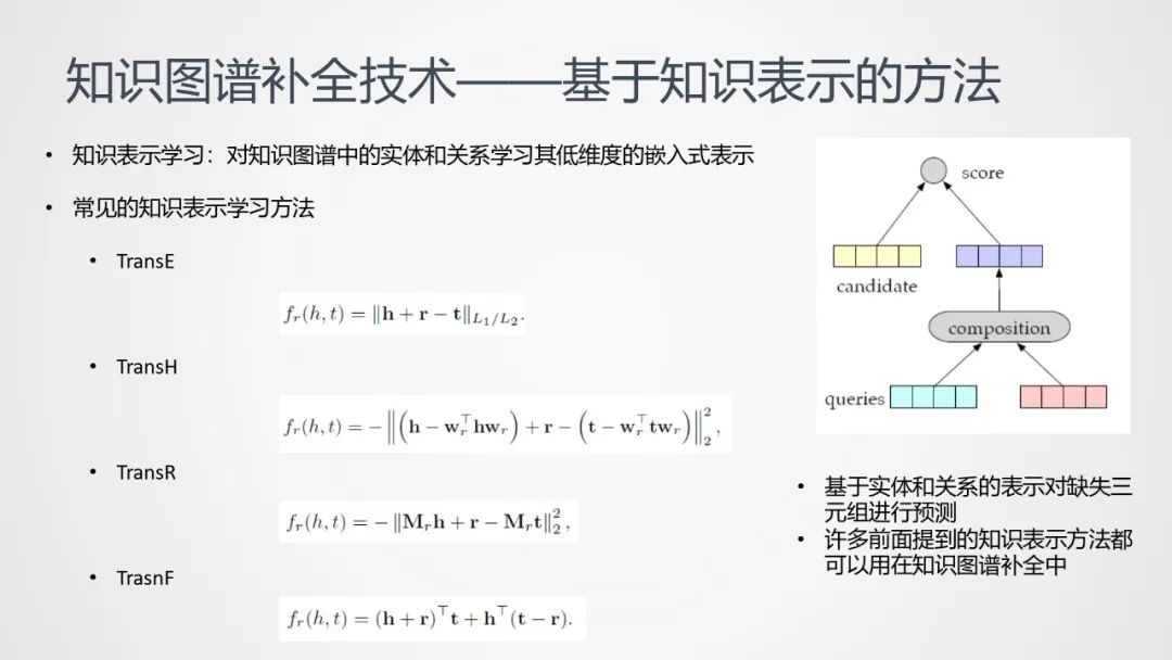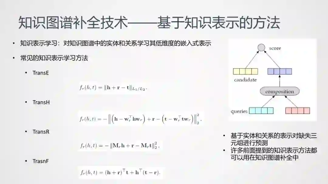 许多前面提到的知识表示方法都可以用在知识图谱补全中。