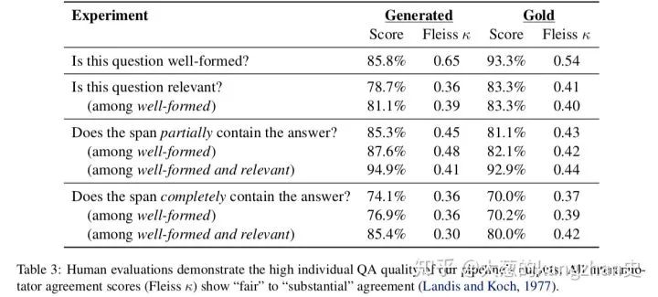 在训练时,我们使用这些数据集中的真实答案范围作为问题生成器的输入。将输入段落中的所有单个句子视为潜在的答案范围(以生成一般和具体问题),以及所有实体和数字(仅针对具体问题)。