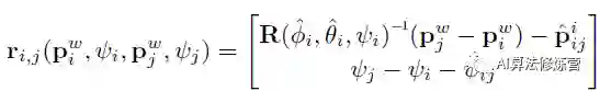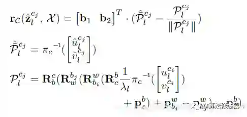 在第i帧第一次观测到第l个路标点,在第j帧中对该路标点进行观测的残差为: