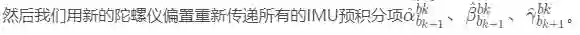 考虑到了陀螺仪bias噪声,我们可以得到陀螺仪偏置bias的初始校准,需将陀螺仪偏置bg代入到IMU预积分重新计算预积分。