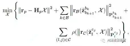 视觉惯性BA,最小化边缘化的先验信息和IMU、视觉测量残差之和。