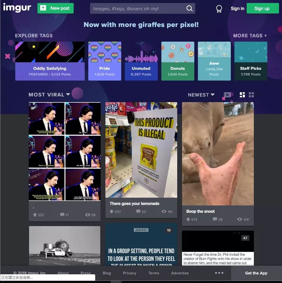 Imgur创立于十年前,你可以把它看作是一个轻社交的表情包搜索引擎,图片以沙雕有趣为主,专治社交媒体们的人格美化症,它更像是社交软件的gif图片供应商,内容至上。