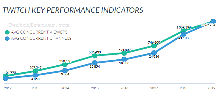 Twitch发布于2011年,在2014年以接近10亿美元的价格被亚马逊收购,主打游戏直播。有数据显示,Twitch上每月活跃主播达到220万,日活用户1500万,日均使用时长95分钟,平均同时在线100万人。