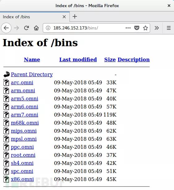 对该网站 /bins 目录的分析显示了其他Omni样本,这些样本显然是使用GPON提供的漏洞CVE-2018-10561。