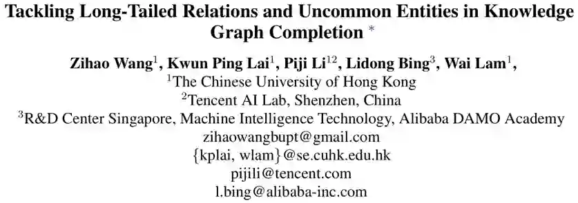 KG的分布遵循长尾分布,大部分关系只有很少的三元组,且大体趋势是关系出现的频率和与之相关的不常见实体的比例呈反比关系。而之前的知识图谱补全工作都围绕在那些出现频率较高的实体和关系,忽略了剩下的那些infrequent relation和uncommon entities,所以作者就将针对 infrequent relations 和uncommon entities的KGC构造成一个few-shot learning的问题,并提出了一个meta-learning框架。