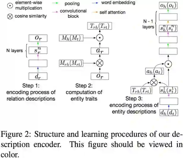 先将entity的description通过一个CNN网络生成hidden states,再用上一步生成的entity trait作为key计算隐状态权重,最后生成entity embedding。