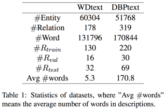 作者通过Wikidata和DBPedia人工构造了两个数据集,只选择那些对应三元组出现次数多于5次少于1000次的关系。
