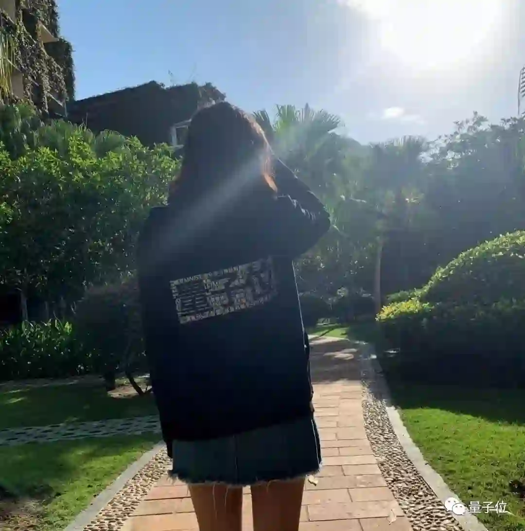 11位获赠量子位厂服的读者粉丝纷纷来图表达对卫衣的喜欢。其中来自哈尔滨工程大学的AI爱好者涂同学穿着量子位厂服拍了一组充满创意的照片。