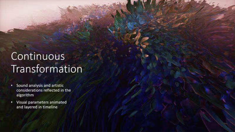 图 5:音乐场景被解析映射为视觉元素,并由 GLSL(OpenGL 着色语言)编程绘制。