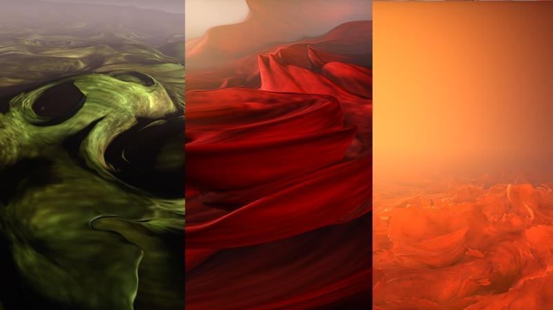 最后一个案例For Tashi 则结合共同创作这中一位经历的心身痛苦折磨经历和对应的音乐片段,通过对音乐声浪的可视化表达,进一步探究音乐和可视表示的内在联系(图5)。这个案例从音乐片段的物理属性和人文属性两方面入手,物理属性包含音乐的音景、乐器和声乐,人文属性包含音乐所体现的情感和音色,通过对这些元素进行光谱分析和重要特征研究,将其转化为可视化中的高亮、颜色、纹理、动画、域扭曲和移位等多种形式,并基于执行效率更高的3D渲染光线匹配算法,充分体现出音乐和视觉的相互作用,为普通用户提供了一种音乐的可视表达形式,能够帮助他们更好地理解身体和情感上的心路历程 (图 6)。