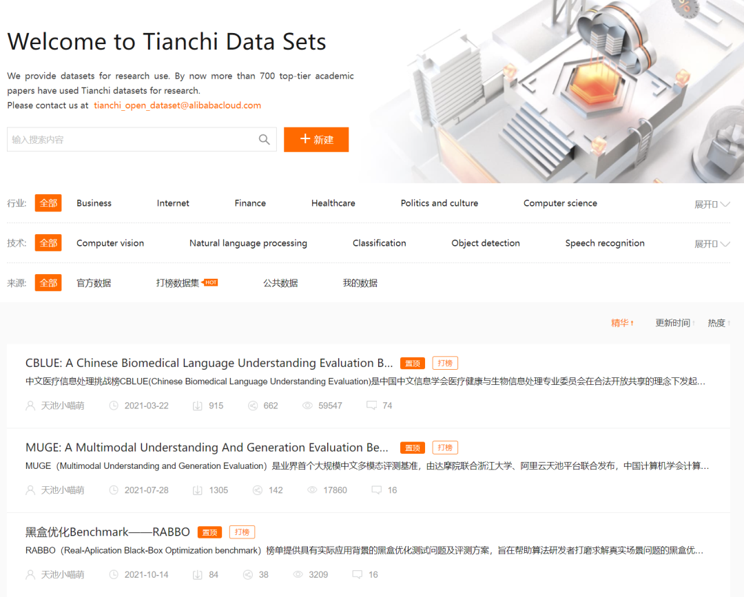天池在AI技术人才的培育方面也极其务实。基于天池2.0数据集开源计划,天池为AI开发者提供了数百个行业大规模开源数据集,其中既有来自工业界的真实数据,也不乏跟产业界、学术界深入合作获得的宝贵科研数据,覆盖零售、文娱、工业、医疗、自然科学等数十个行业。基于这些数据集产出的学术论文,已经超过700篇。