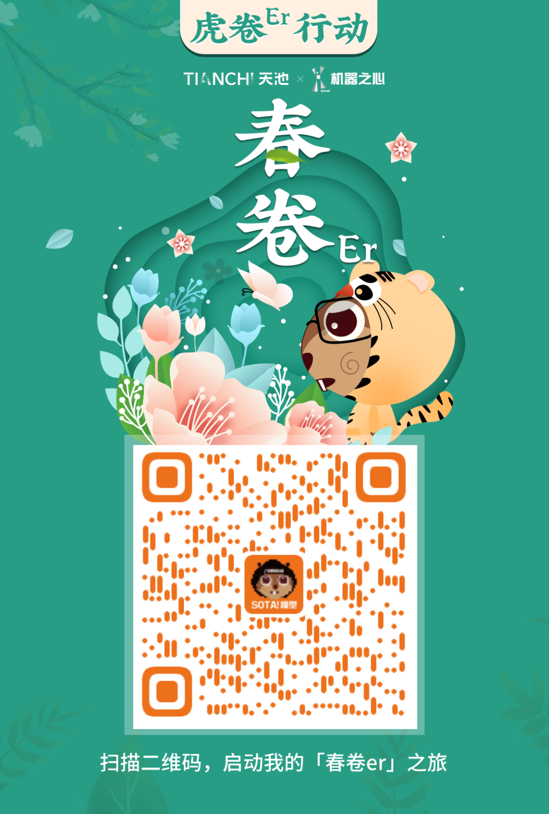 在「虎卷er行动 · 春卷er」中积分达到 60 分以上的老伙计将获得机器之心「SOTA !模型」、「机动组」及共同准备的「虎卷er行动· 春卷 er」心意盲盒 ~