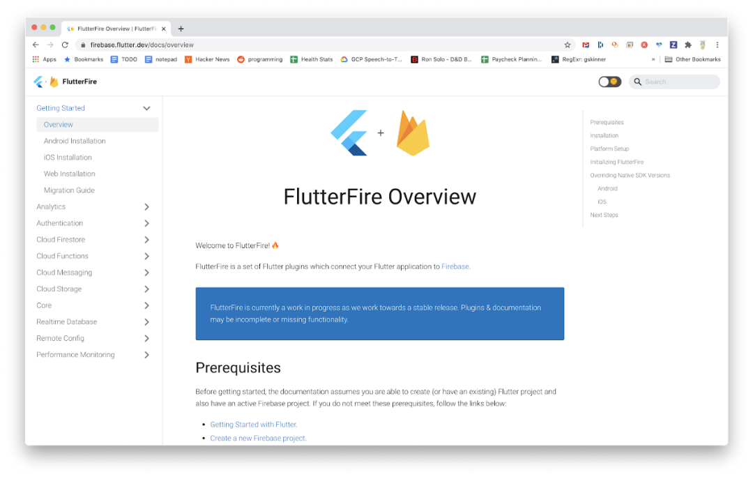 您无需再阅读原生的 Android 或 web 版 Firebase 文档,不必再猜测 Flutter 应用中要使用的等效 API 了!全新的文档网站上包含大多数 Firebase 插件 (不仅仅是 Core、Authentication 和 Firestore) 的相关文档以及 Android、iOS 和 web 端的安装说明、常见场景的概览与代码片段以及视频供您使用参考。