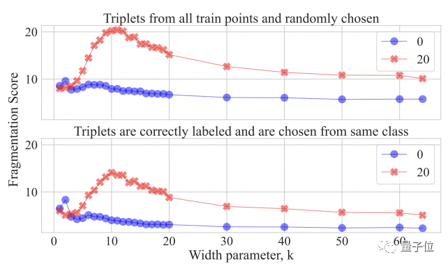 而在模型宽度很窄(k=4)和很宽(k=64)时,决策区域碎片较少,有高水平的可重复性。