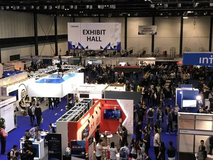 KDD 2018 同期展会也于21号正式开幕,展会地址就在 EXCEL LONDON 的 0 楼大厅,整个展区并不是很大,所有企业的展位也没有特别奢华的装修,看上去就像普通大展会角落里的格子间,但这些格子间里面的企业却都是家喻户晓的知名企业,除了 Google、Facebook 这样的国际巨头,也有 BAT 等国内巨头撑场。