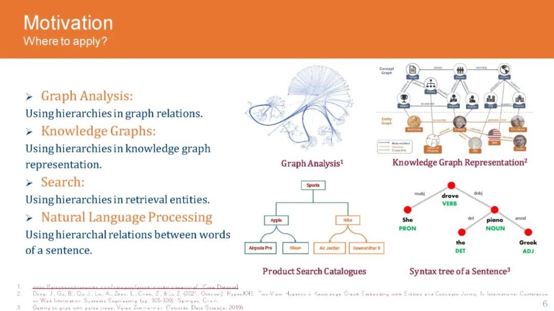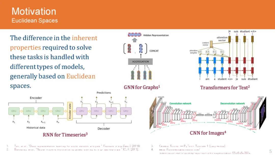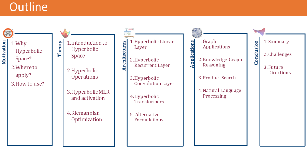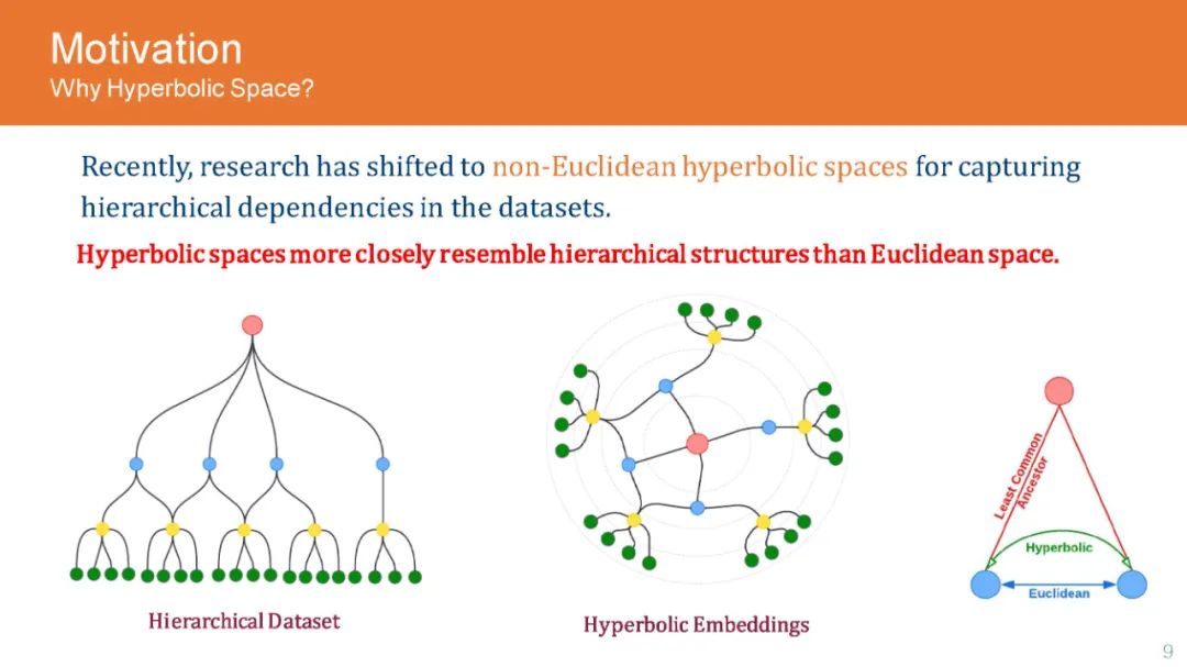 图是普遍存在的数据结构,广泛应用于许多数据存储场景,包括社交网络、推荐系统、知识图谱和电子商务。这导致了GNN架构的兴起,用于分析和编码来自图的信息,以便在下游任务中获得更好的性能。虽然图分析领域的初步研究是由神经结构驱动的,但最近的研究已经揭示了图数据集特有的重要属性,如层次结构和全局结构。这推动了对双曲空间的研究,因为它们能够有效地编码图数据集中存在的固有层次。随后,该研究也被应用到其他领域,如自然语言处理和计算机视觉,取得了令人惊叹的结果。然而,进一步发展的主要挑战是双曲网络的晦涩,以及更好地理解必要的代数操作,以扩大应用到不同的神经网络结构。在本教程中,我们的目标是向网络领域的研究人员和实践者介绍欧几里得运算的双曲等变,这是处理它们在神经网络架构中的应用所必需的。此外,我们描述了GNN架构的流行双曲线变体,如递归网络、卷积网络和注意力网络,并解释了它们的实现,而不是欧几里得网络。此外,我们还通过图分析、知识图谱推理、产品搜索、NLP和计算机视觉等领域的现有应用来激发我们的教程,并将性能提高与欧几里得的同类方法进行比较。