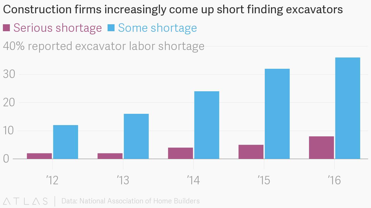 图 4 挖掘作业面临的劳工短缺(NAHB数据)