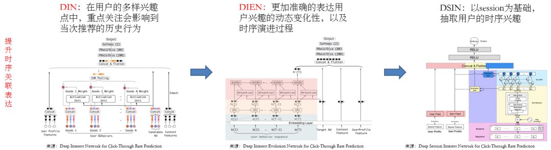 在前文中,我们也提及了时序关联表达的问题。对此,我们曾经采用过针对点击率的 DIN(Deep Interest Network)。