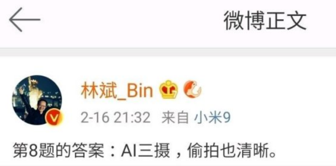 NO.2 小米副董事长林斌“AI三摄,偷拍也清晰”