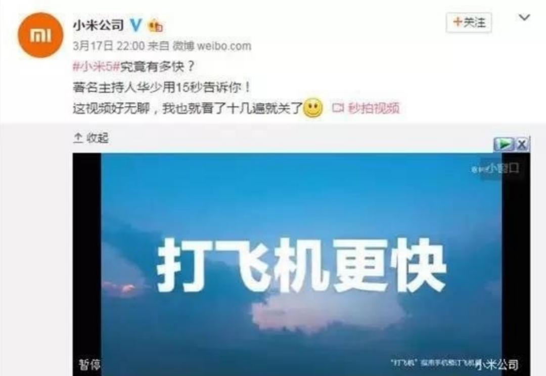 NO.4 小米官微:打飞机更快