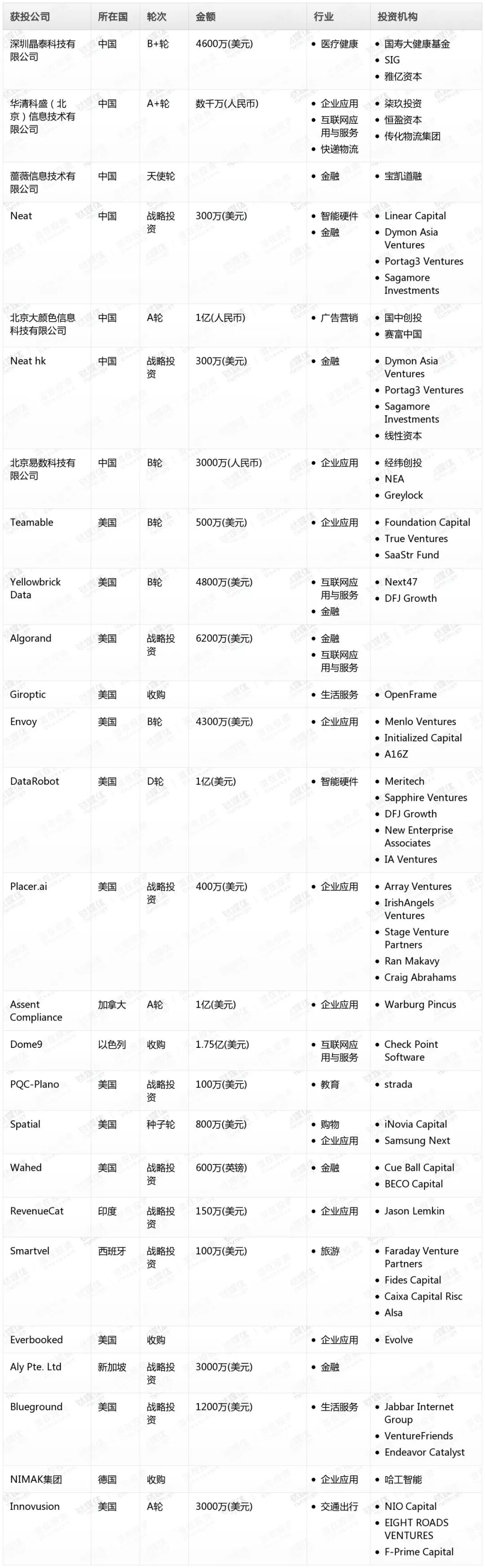 表:2018年10月25日 海内外科技领域投融资事件(钛媒体Pro制表)